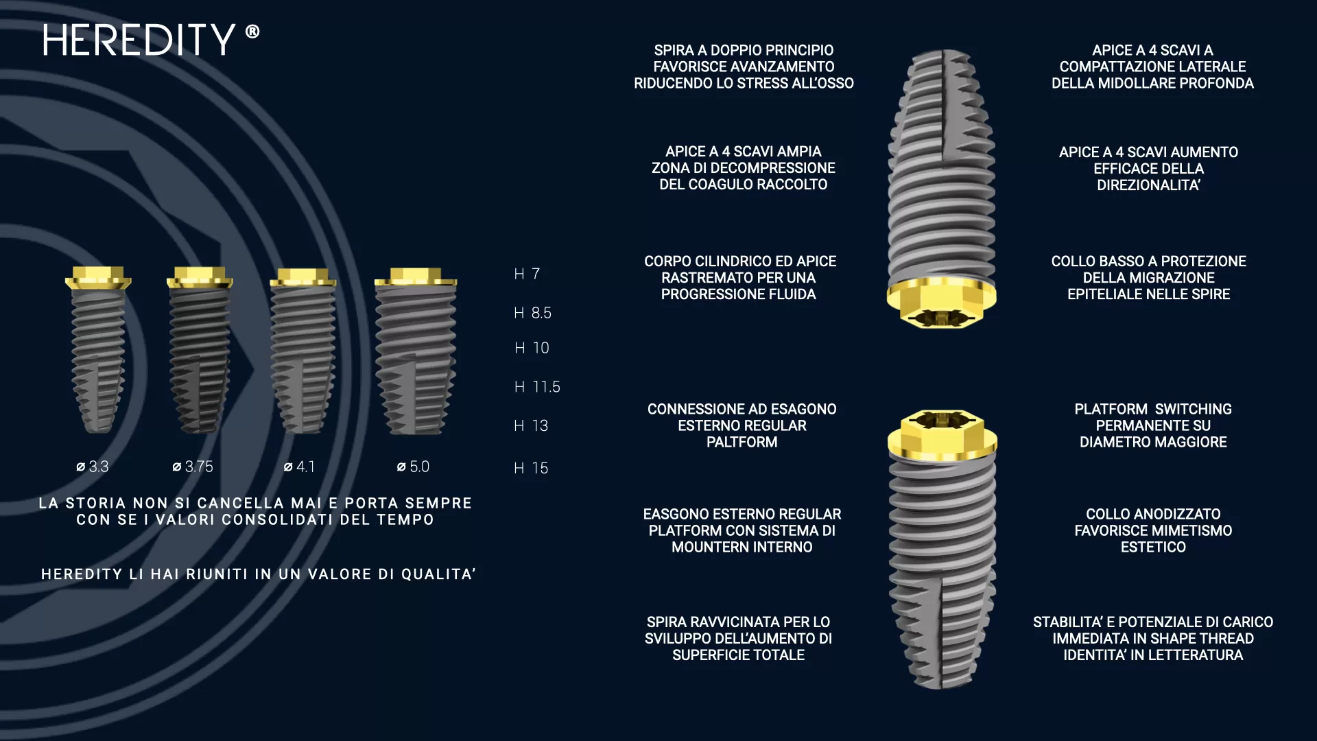 Heredity è la risposta che integra la semplificazione chirurgica al link protesico più apprezzato di sempre, per il trasferimento all’esterno dell’impatto del carico sulla porzione coronale dell’impianto.