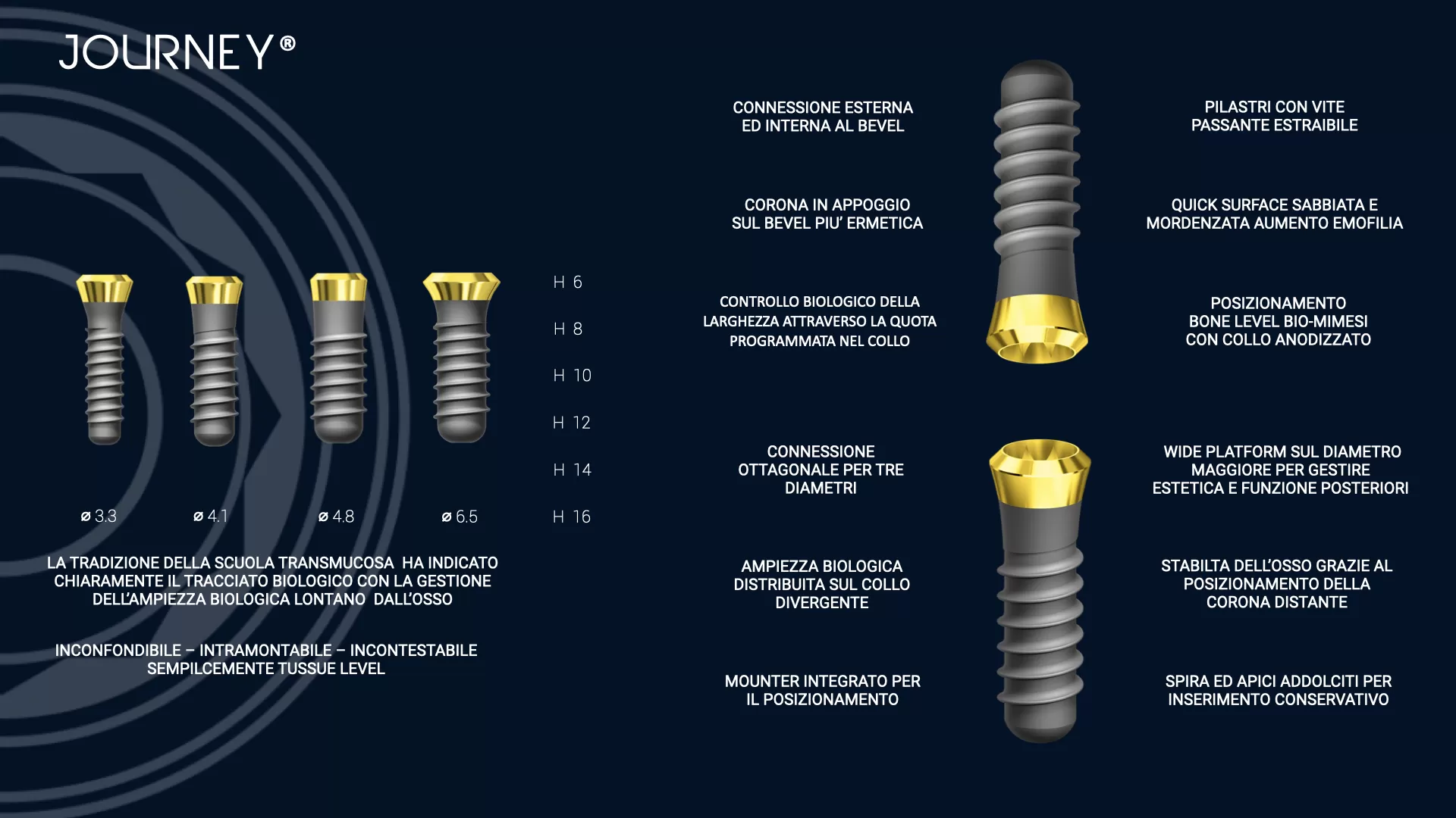 Journey permette ai tessuti di organizzarsi stabilmente intorno al collo, eliminando il gap in prossimità crestale ed assicurando lunga vita alla stabilità della fixture che supporta la protesi.