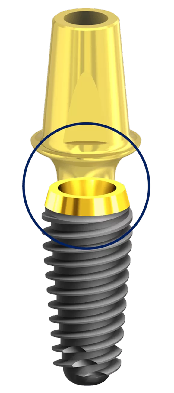L’assenza di infiltrato batterico promossa dal sigillo, garantisce la distribuzione e la stabilità dell’ampiezza biologica, che si affida al Platfrorm Switching per sostenere i tessuti molli e rafforza l’equilibrio di tutto il complesso Osteo Muco Gengivale