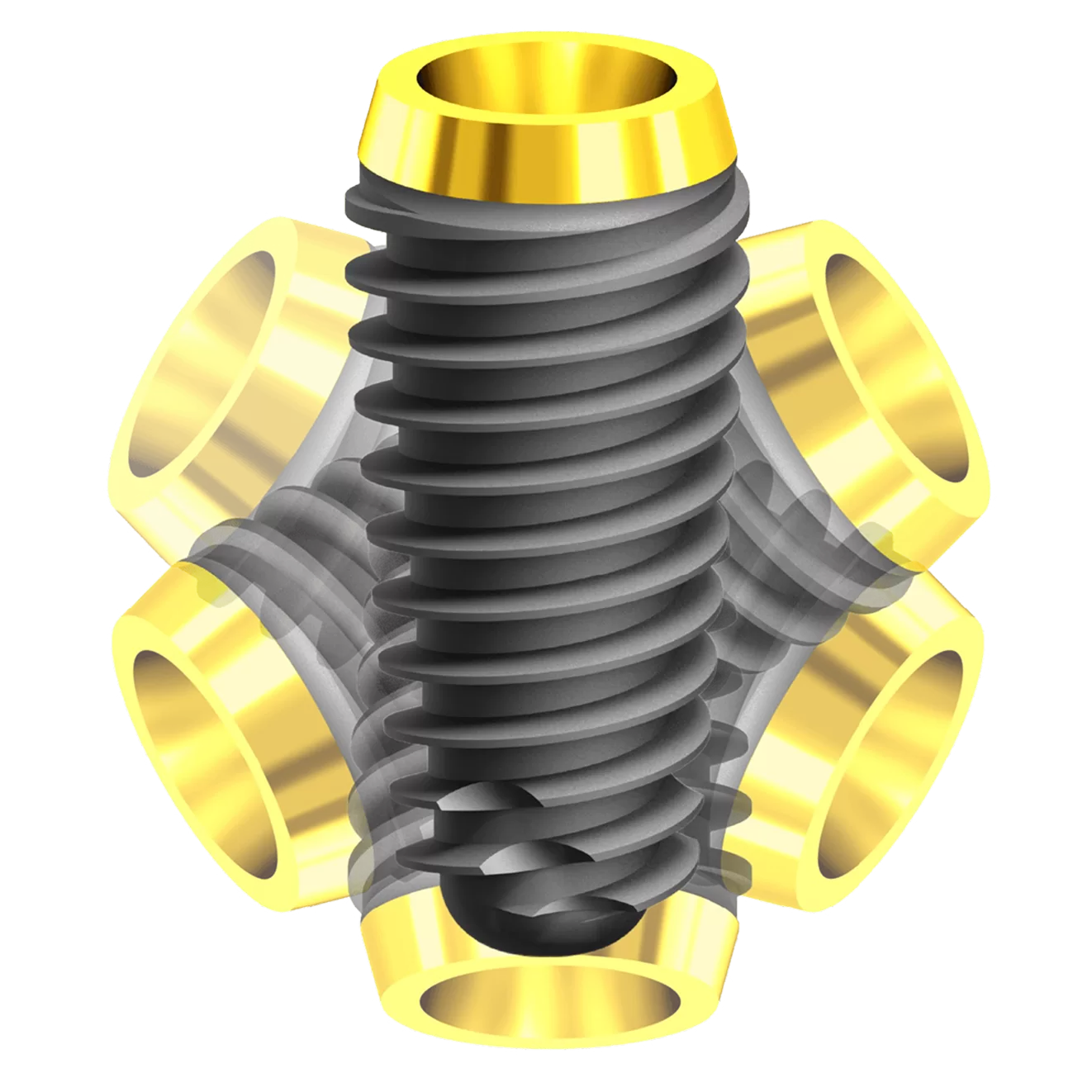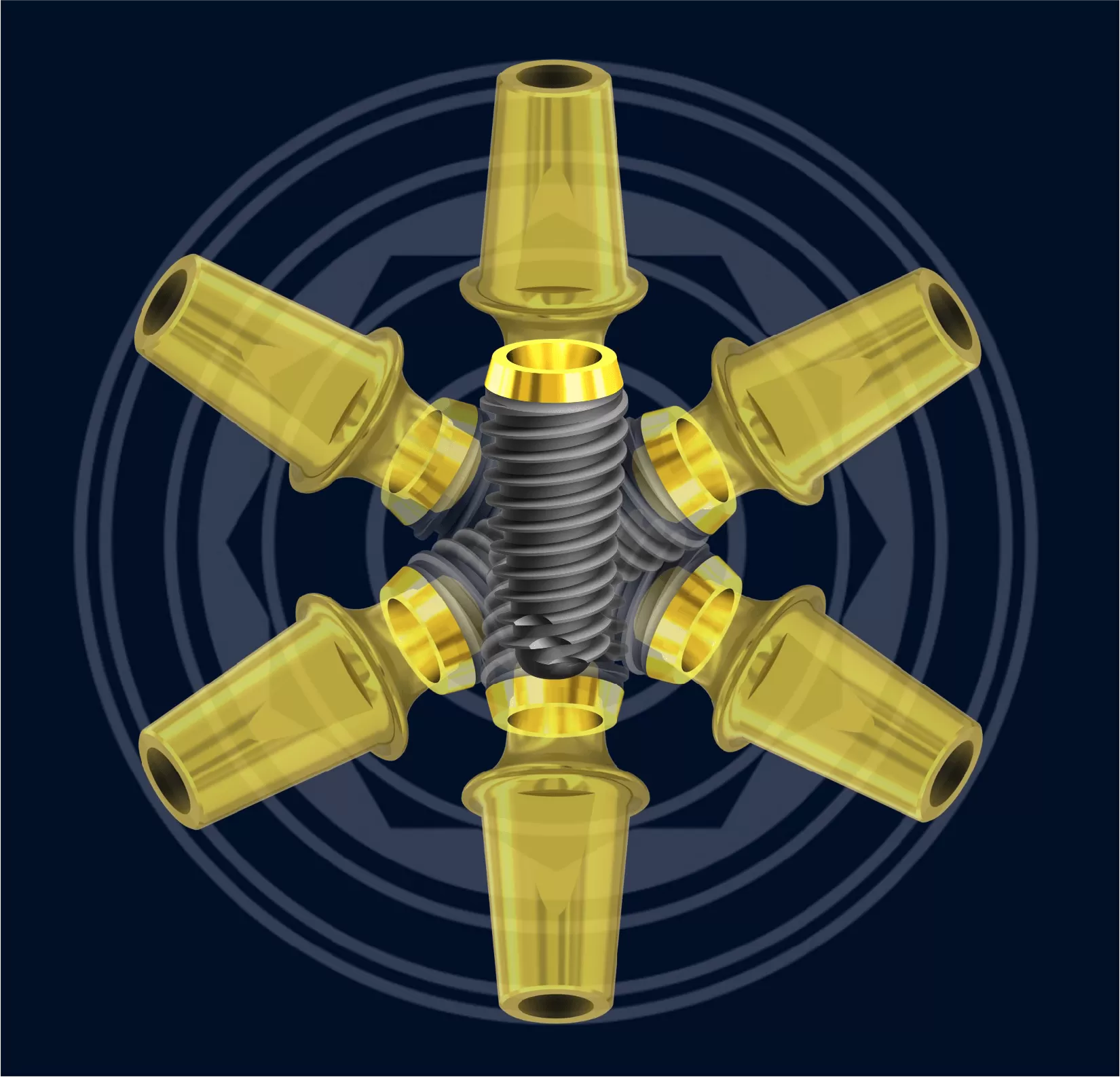 La conometria distribuita su 5° per asse, 10° in totale, si attiva con avvitamento creando una fusione a freddo. Le tolleranze molto strette di KALODON, definiscono il sigillo batterico e assicurano la massima resistenza allo svitamento: grazie a questa caratteristica, il pilastro è sicuro nel suo ingaggio anche in caso di svitamenti improbabili.